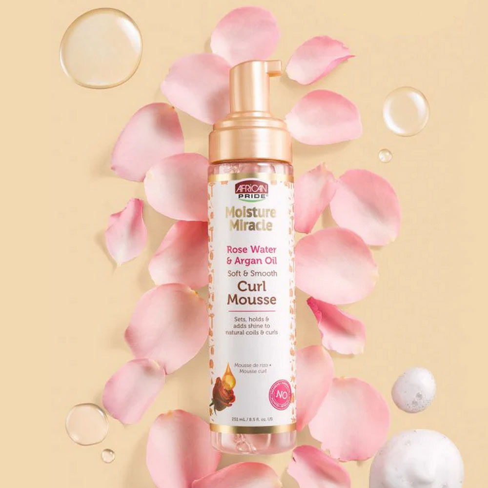 موس مو افریکن پراید African Pride مدل Moisture Miracle یکی از بهترین محصولات مراقبت از مو برای افرادی است که موهای فر، مجعد یا حالت‌دار دارند و به دنبال حجمی زیبا، درخشندگی طبیعی و نرمی بی‌نظیر هستند. این موس با ترکیب منحصربه‌فرد آب گل رز و روغن آرگان فرموله شده تا موها را از ریشه تا ساقه آبرسانی کند، فرهای طبیعی را خوش‌فرم‌تر کند و در عین حال از وز و خشکی مو جلوگیری نماید.